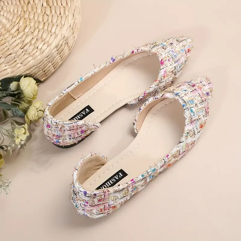 🔥Last Day 49% OFF -Comfy Tweed Pointed Toe Flats - Women's Elegant Side Cut-out Slip On Soft Sole Shoes