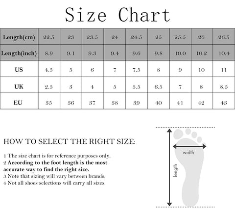· Please refer to the chart above to make a decision about the correct size based on your foot length.