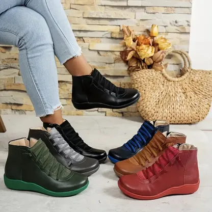Ladies' Trendy Multicolor Short Orthopedic Boots, with Zipper Details, Fashionable and Comfortable