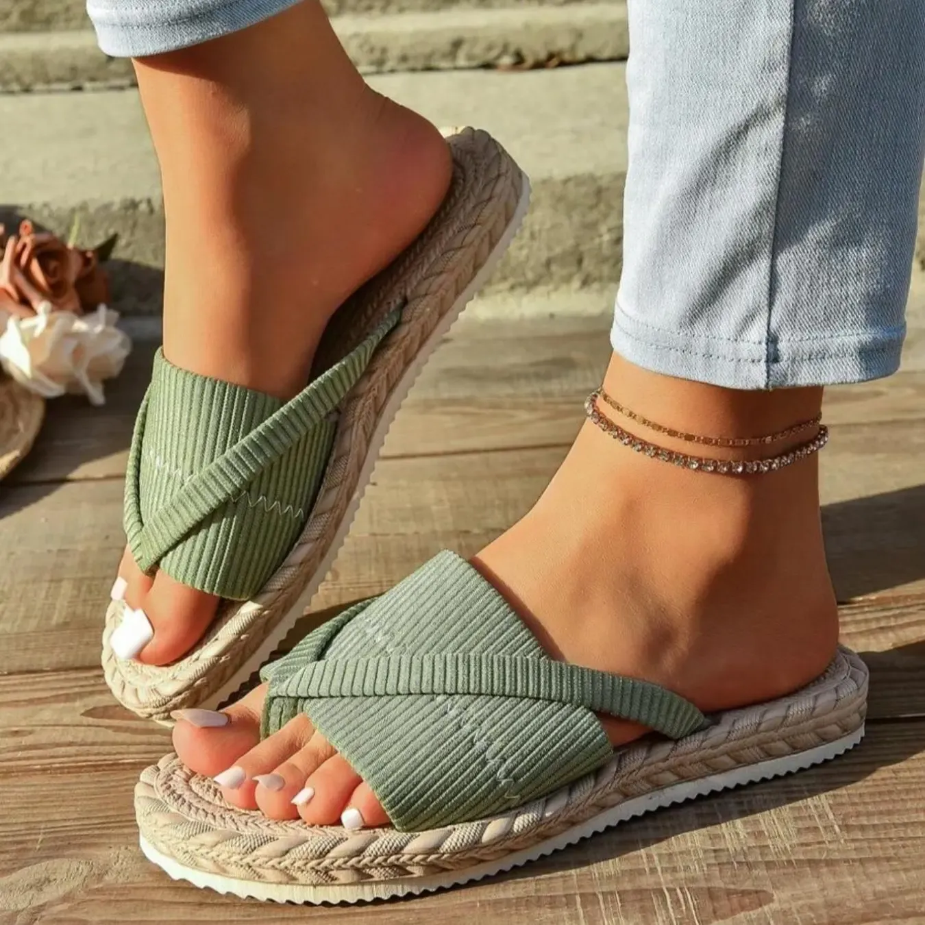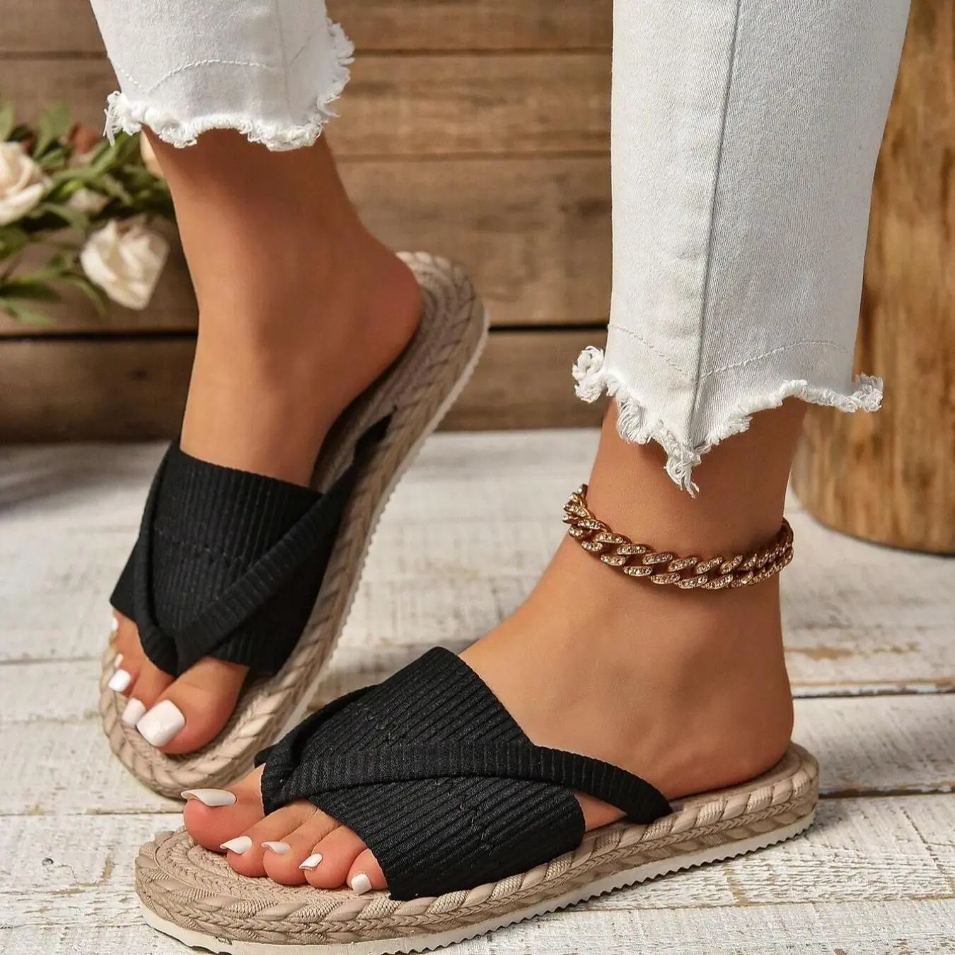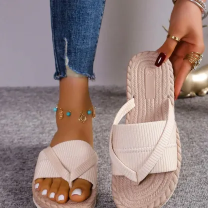 Women's Fashionable Beach Flip Flops, Casual Comfortable Flat Sandals for Outdoor Vacation, All-match Toe Ring Slides for Daily Wear, Walking Shoes